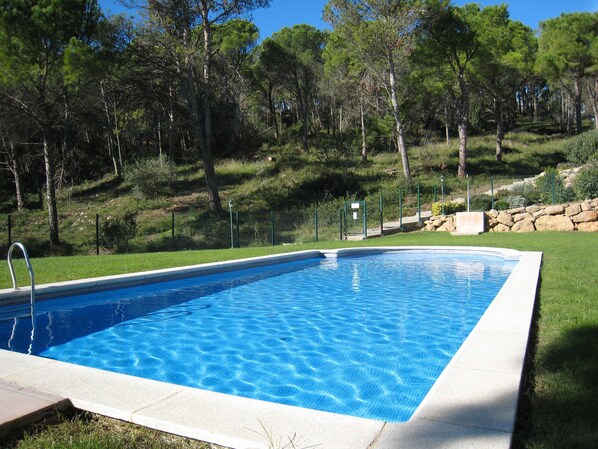 Deze hoekwoning is gelegen in een afgesloten wijkje van 18 woningen vlak bij het bos, circa 5 km. van het prachtige zandstrand en het centrum van L'Estartit. Deze badplaats was vroeger een oud vissersdorpje en is vandaag de dag uitgegroeid tot een populaire vakantiebestemming. Met zijn gezellige winkelstraat, boulevard en levendige haven maakt het een bezoekje waard! En we moeten vooral niet zijn lange zandstrand vergeten waar je kan kajakken, kitesurfen, snorkelen, zeilen,... of ook kunt kiezen om op een handdoek te genieten van de Middellandse Zee met zijn Spaanse zon. U kunt ook de zee inruilen voor een zwembad! Want Casa Carmen heeft een mooi gezamenlijk zwembad gelegen aan de bosrand, wat voor een rustgevende sfeer zorgt. Op 300 meter van de woning is een restaurant en op circa 2 km. afstand is een supermarkt met warme bakker. Casa Carmen heeft aan de voorkant een afgesloten terras met barbeque. De woning heeft 3 verdiepingen. Op de begane grond bevinden zich de woon/eetkamer met openhaard, TV (spaanse zenders) en openslaande deuren naar het balkon vanwaar u een schitterend uitzicht heeft over de landerijen en het bos. Verder is hier de open keuken voorzien van een keramische kookplaat, oven, magnetron en grote koel/vrieskast. Op de begane grond is één tweepersoons slaapkamer met 2 éénpersoonsbedden. Op de étage zijn 2 tweepersoons slaapkamers waarvan één met balkon en een luxe badkamer. Onder de woning is een verdieping met de tweede badkamer en met wasruimte.Extra informatie:Slaapkamer indeling:Slaapkamer 1) 1x 2 persoons 140 x 200Slaapkamer 2) 2x 1 persoons 90 x 200Slaapkamer 3) 2x 1 persoons 90 x 200Huisdieren:Huisdieren zijn toegestaan (maximaal 2)Kosten: € 45 per huisdier/per verblijfVerwarming:Geen verwarming