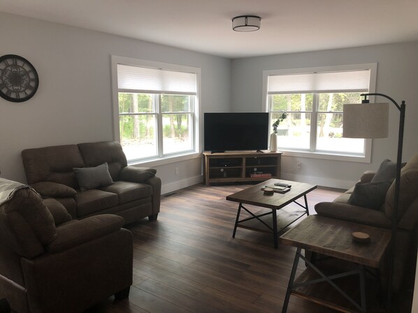 Het huis is een huis met 3 slaapkamers, 2 badkamers, 1.700 vierkante voet, ingericht met alles wat nodig is voor een comfortabel verblijf. Een slaapkamer bevindt zich op de begane grond met een queensize bed; de twee slaapkamers boven hebben een queensize bed in de ene kamer en een twin XL / queensize stapelbed in de andere. Er is ook een full-sized futon in de woonkamer. Er zijn twee volledige badkamers, een op elke verdieping. De woning is voorzien van de volgende voorzieningen: