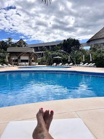 Ja, deze accommodatie heeft 4 buitenzwembaden. Je hebt 24 uur per dag toegang tot het zwembad.