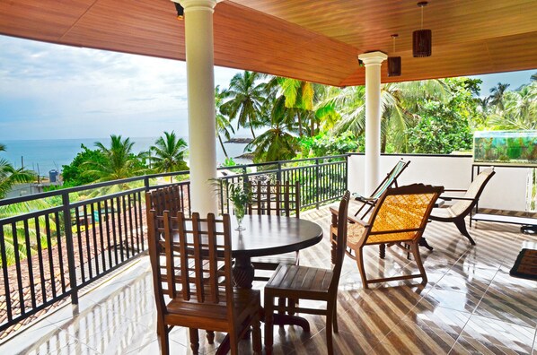 Don't do a mistake. Never book this "amazing" Sea view villa. We stayed only 2 nights out of 6 we'd booked just because we had nowhere else to stay. As soon as we found a decent place to stay we left this awful place. First of all the view from our balcony was like in the middle of a building lot. On the edge of our balcony, I mean right next to it - they had massive construction going on. From early morning to 10:30 PM construction was in full swing with all the noise that comes with it. That is not really the view and the sound you expect when going on vacation to Sri Lanka, when ordering a "sea view" place on a beach. Trust me, you won't see any sea, any ocean or anything beautiful. We were really shocked. Ignoring the fact they don't provide any soap or shampoo. The cherry on top was a room full of rat's excrements (on the floor or even around dishes and on a counter) and the rat itself running around in the room and all our suitcases, tearing plastic bags or other things. The excrements were all over the place so this means the room hadn't been cleaned. The toilet was not working. The dining area was so worn out that you loose the appetite the moment you enter it. The balcony furniture looked like dogs' chewing toys so you can scratch your arms on it (teeth marks all over the armrests). I guess the worst part was when after sending pictures to expedia - the hotel denied everything and said the pictures were not from their room :D the hotel never issued a refund