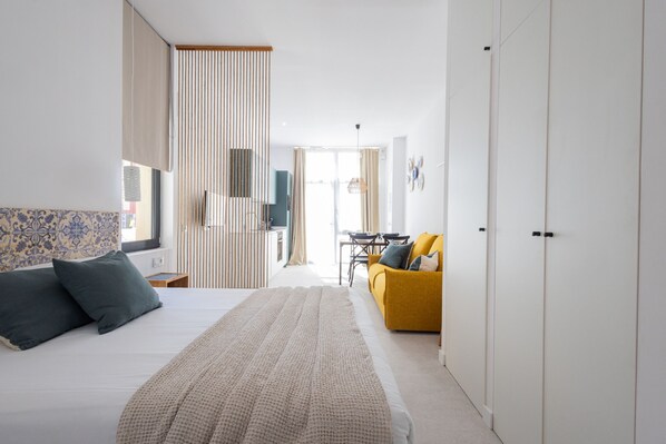 Enjoy the freedom of the fully equipped kitchen, with everything you need to prepare your meals: fridge, oven, microwave, hob, toaster, water heater and coffee machine with complimentary coffee capsules and infusions.