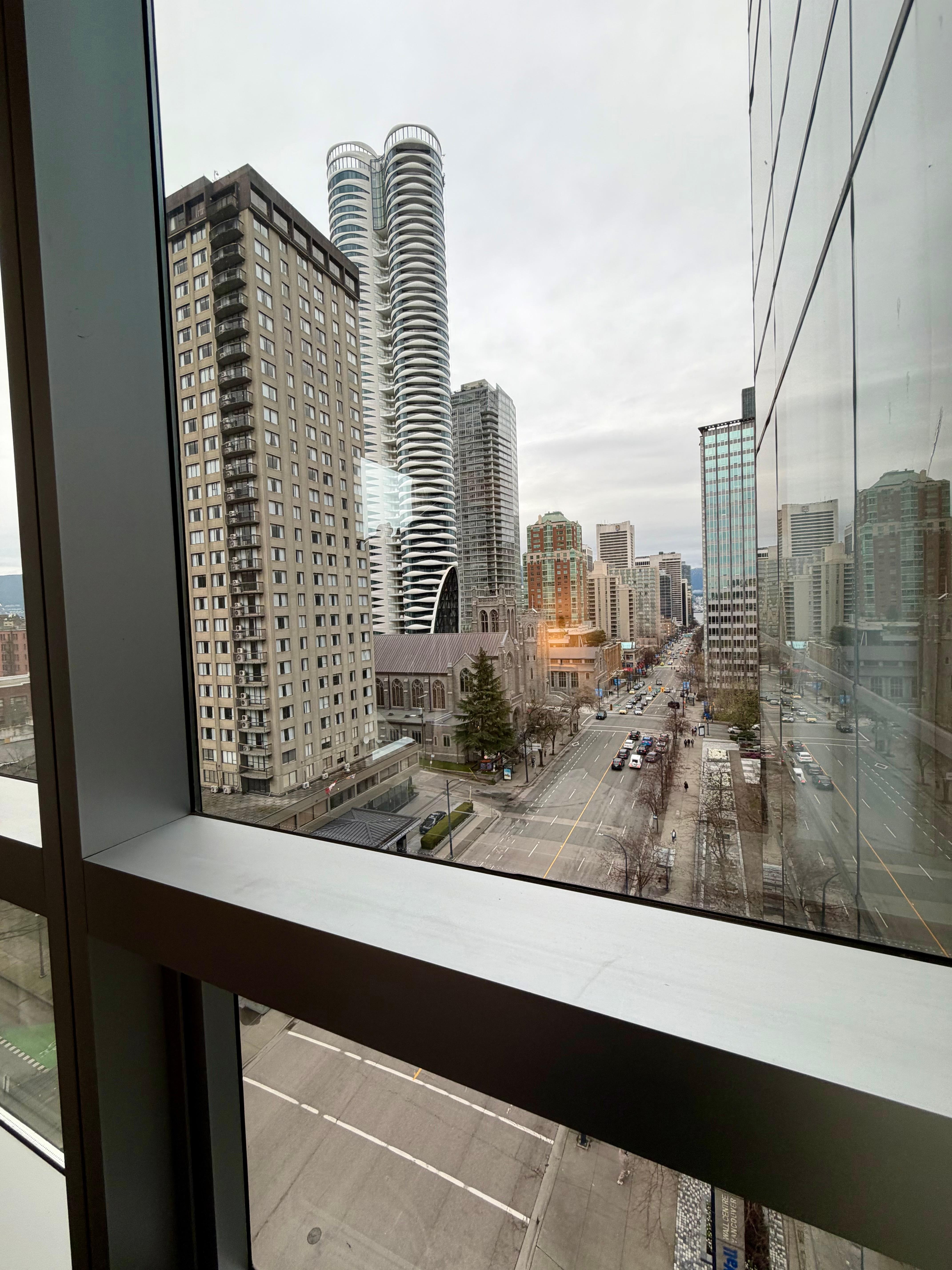 TRÈS CENTRAL - PRÈS DU SKYTRAIN - TRANSPORT DE L'AÉROPORT (STATION- VANCOUVER CITY CENTER) 10 MINUTES DE MARCHE. BEL HÔTEL + CHAMBRE AVEC UNE BELLE VUE SUR LA VILLE. FRIGO + SAFE DANS LA CHAMBRE + CAFÉ.