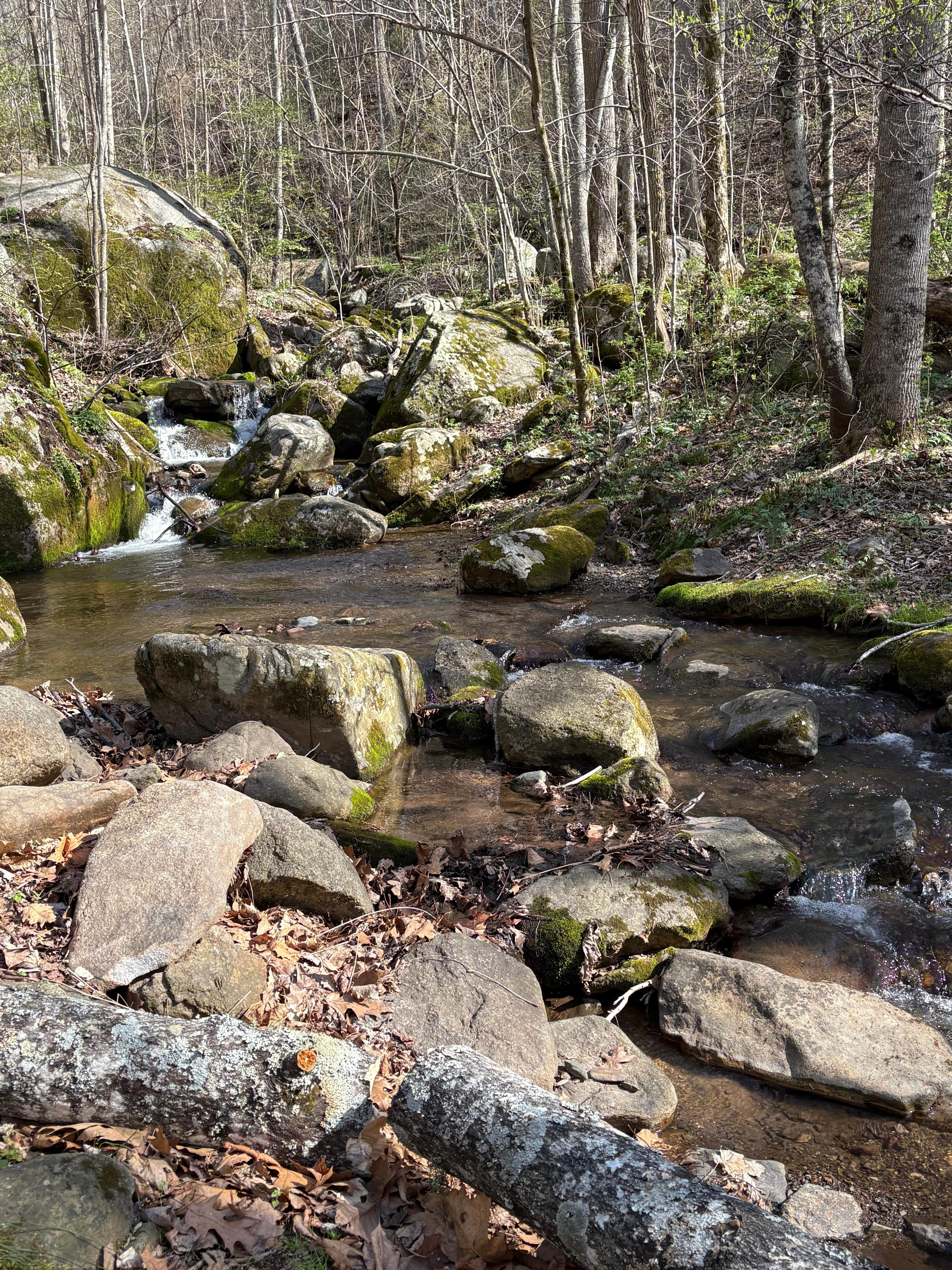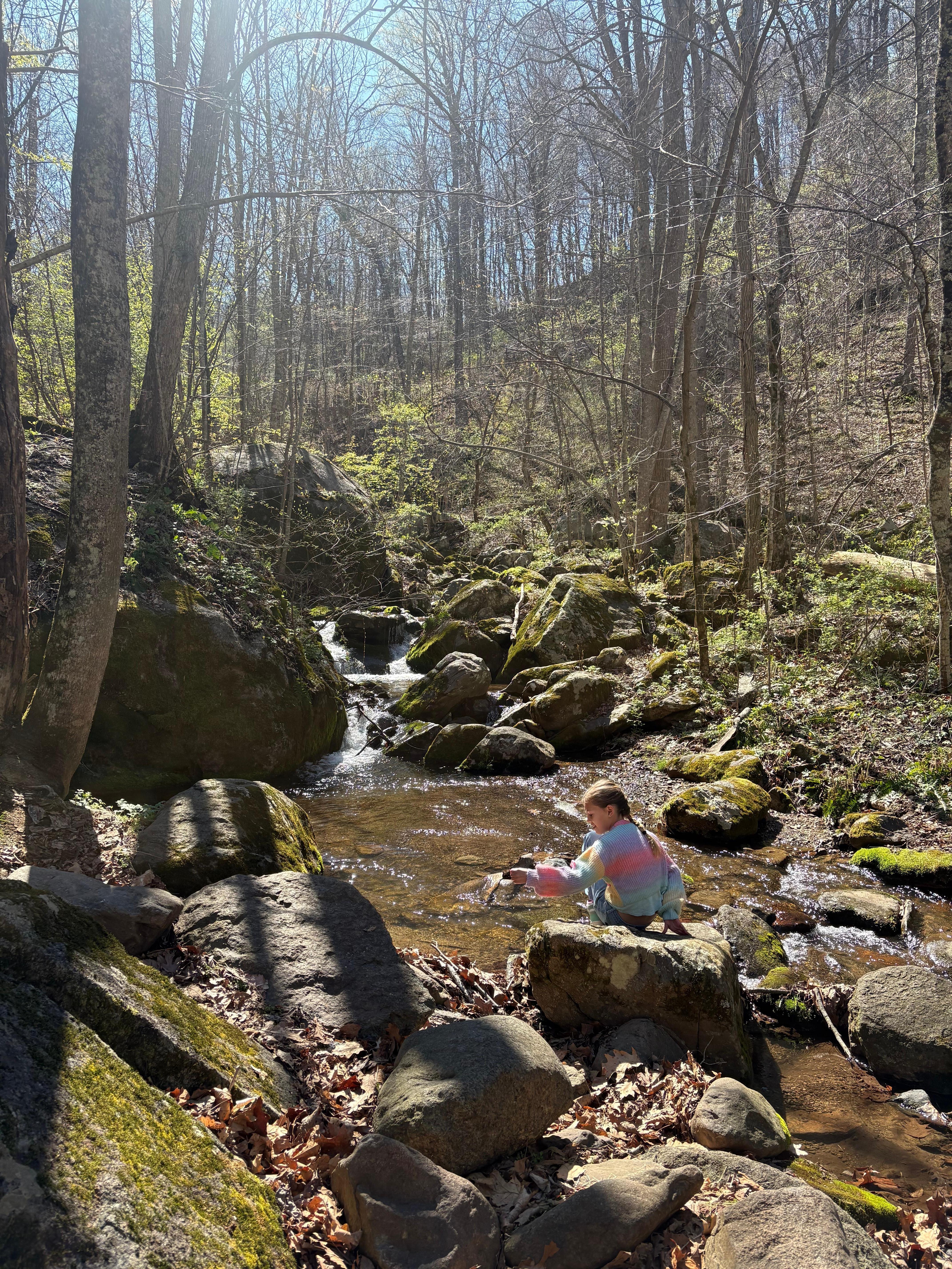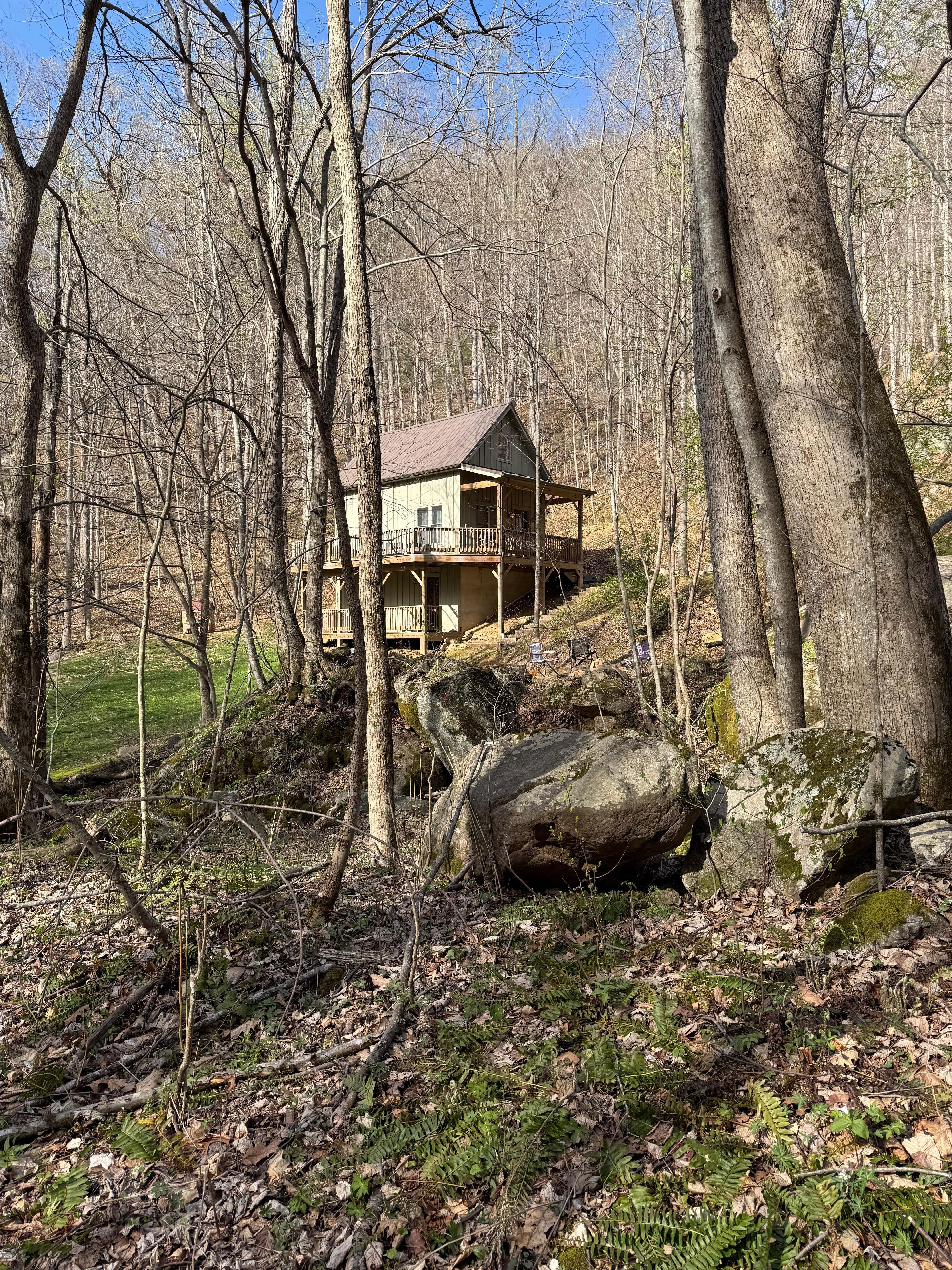 Our cabin is on the side of the mountain with some steep terrain and lots of natural elements outside to discover. The creek is a fun place to splash and explore.
