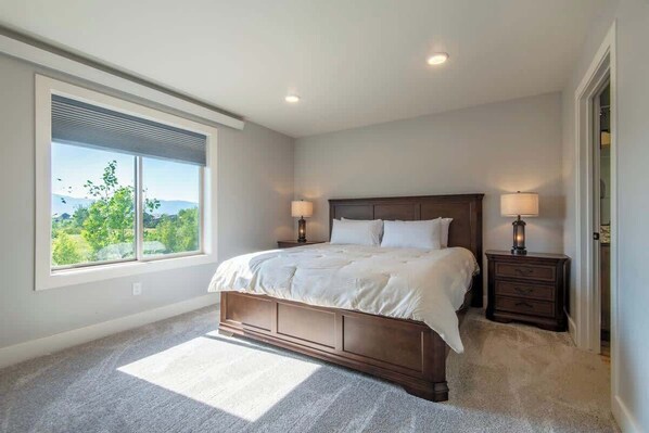 :: Primary Suite: Sink into the plush king bed, unwind in your en suite bathroom, and step onto your private patio to marvel at breathtaking Teton Valley sunsets. Your sanctuary of relaxation awaits.