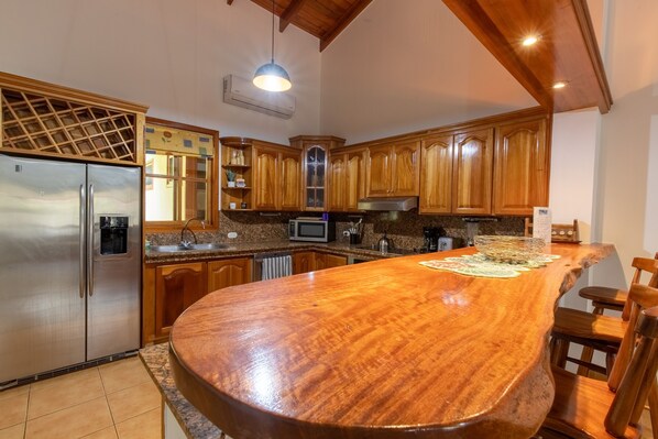 The Villas have top of the line amenities, such as granite counter tops, Air conditioning, a full kitchen including most essential cookware and teak ceilings. The pool has a swim up bar, Jacuzzi and Rancho. Nothing was over looked. Our Villas include two bedrooms and two baths spread out over 1,500 square feet. The rear Patio adds an additional 260 sq. feet of living space.