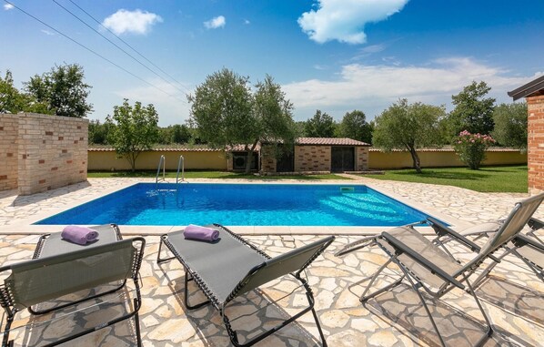 Dit vakantiehuis in Višnjan is voorzien van een privézwembad en een keuken