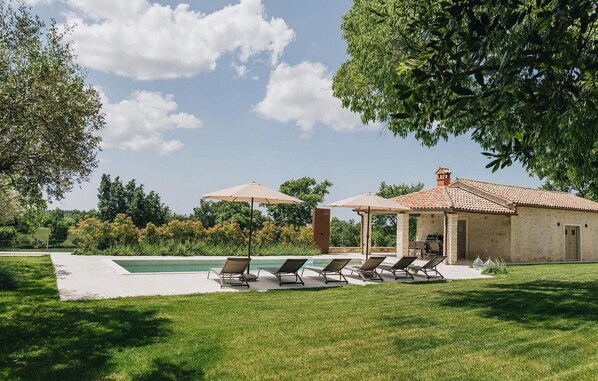 Dit vakantiehuis in Višnjan is voorzien van een privézwembad en een keuken