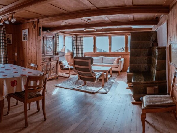 type gebouw: eengezinshuis. Maximaal 2 huisdieren/honden toegestaan. Detached, spacious holiday home close to skiing and hiking areas. The traditional Toggenburg house (built before 1900) with its shingled façade and well-tended garden is situated in the centre of the village of Krinau, yet in a very quiet location. It offers space for seven people. You can arrive by post bus from Lichtensteig or by private car. The house is lovingly furnished and has a cosy ambience in which to relax and unwind. On the ground floor there is a spacious entrance hall with cloakroom, the living room with dining area and a cosy tiled stove, the kitchen and a bathroom with shower, WC and washbasin. The kitchen is functionally equipped, but without a dishwasher. A coffee machine and a kettle are available. If you want to spend a "Swiss evening", there is a 4-burner Racelette oven and a fondue set for 6 people. On the first and first floor there is an entrance hall, three double rooms, a single room with an additional children's travel bed and a WC with washbasin. The house is heated by a tiled stove. An idyllic garden seating area invites you to linger. Barbecue, garden furniture and parasol are available. The entire property is fenced.There are lots of toys, board games, audio books and books for children and adults.Other sports and leisure activities: Mini golf (Wattwil) Hiking Sledging There are many family-friendly hiking trails in Toggenburg (information is available in the house) There is a beginners' children's ski lift in the village Larger ski area (30 min.) Iltios or WildhausExcursion possibilities: Cheese dairy (various in Toggenburg)Up the mountain Säntis-Klangweg (family hiking trail)Barefoot trail Outdoor pools, Schönenbodensee (mountain lake in Wildhaus) Hiking trail directly from the house to "Chrüzegg"Other living room equipment (living room): Tiled stove (can be heated from the kitchen), bookshelf with various books, chest of drawers with table games, buffet for the crockery, dining area with corner bench and extendable table and chairs, one high chair availableOther bedroom furnishings (bedroom): Table, 2 chairs, chest of drawers, mirror, wardrobe, bedside cabinet with bedside lampsOther kitchen equipment (kitchen): The kitchen has a cooker, oven, microwave, coffee machine, pots and other accessories for cooking. Access to the wood store (cellar) is via the kitchen.Sports facilities in the area: Mountaineering, Cycling, Alpine skiing, Cross-country skiingVillage description: Small, tranquil village 800 metres above sea level with approx. 250 inhabitants. Possibility to order fresh bread (in the "Broteggä" in the former Krinau community centre, self-service).