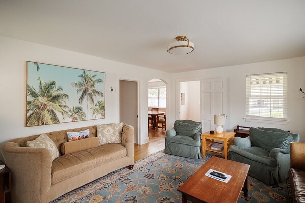 Light-filled and spacious. This beautifully renovated 1940's 4-bedroom, 2-bath home is the perfect place for you, your family, or group to gather and relax. Walk to the Greenbrier Resort & Golf Course, neighborhood brewery, restaurants, live music, and downtown shops. Enjoy the nearby mountains, rivers, lakes, & trails that make WV almost heaven. Luxury bedding. Well-appointed kitchen, separate office, and a kid's reading nook. The fenced-in backyard has a nice firepit, patio & dining table. We do allow 1 dog under 50 pounds with an additional pet fee. The downstairs and two upstairs bedrooms have a queen-size bed and a dresser. The fourth bedroom is upstairs and has 3 twins and 1 is a trundle so it ca nbe 4 twins. This room also has a TV mounted on the wall above a dresser. There is a full bathroom upstairs and downstairs. Nice hardwoods through-out with lots of natural light and original art work on the walls. You'll have the entire home and property to yourselves. I live and work in the area and can usually be contacted by phone and can pop over if necessary. I only come over if needed or asked. Quiet neighborhood with mix of homes, some beautifully kept and others less so. Walking distance to downtown WSS and The Greenbrier Resort. Private driveway and on-street parking This home and the hosts are biker and cyclist-friendly, and bikes can be parked safely in the garage.