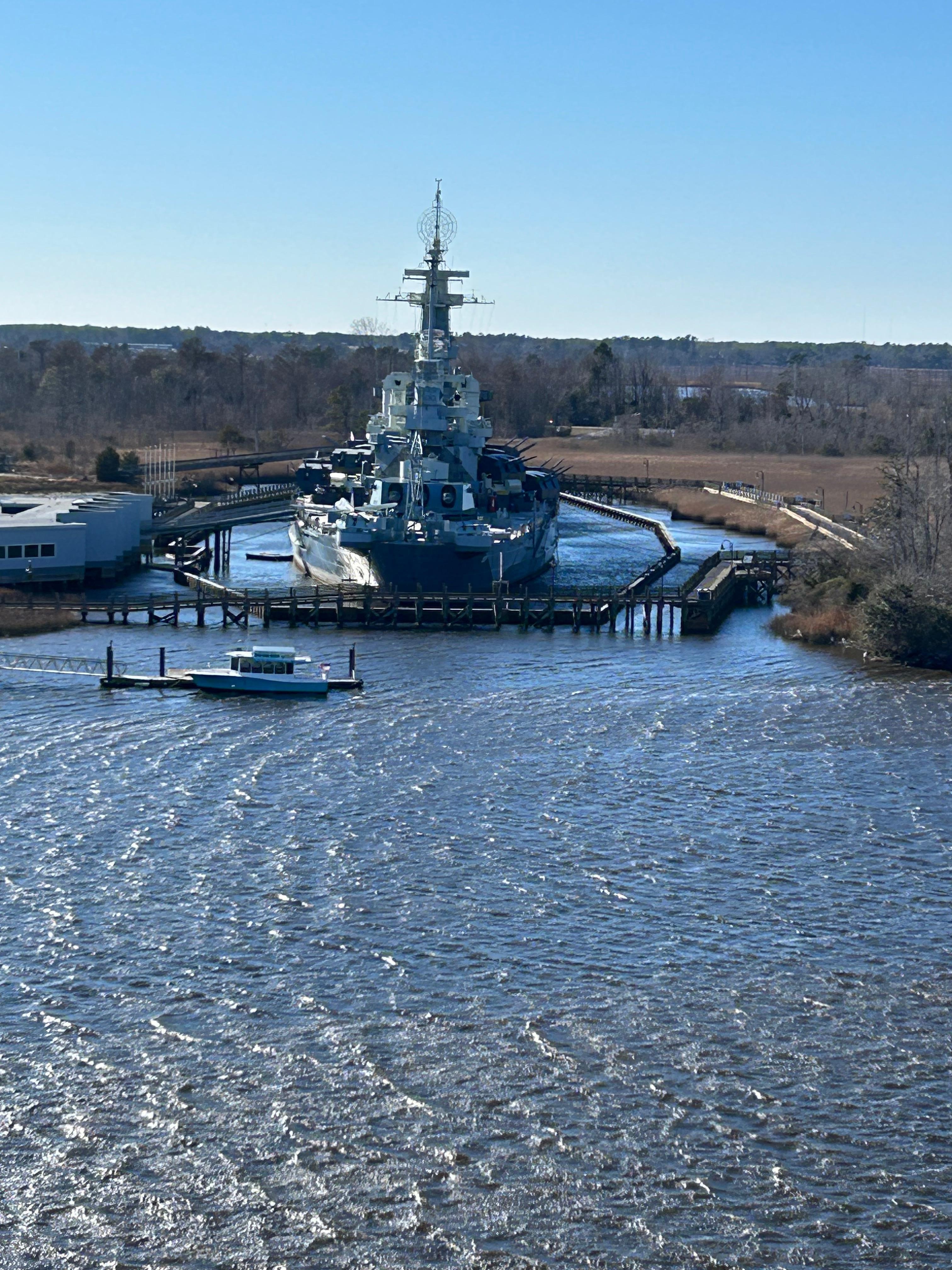 Stap uit op uw eigen balkon en geniet van het uitzicht op Cape Fear River en Battleship North Carolina.