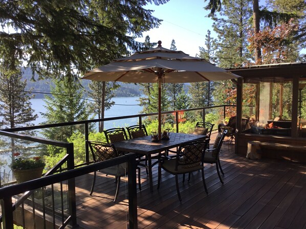 Geschikt voor 8-10 personen. Slaapkamer heeft een queen size bed, Sunroom bed is een queen size bed (dit is mijn favoriete bed om te slapen bij het ontwaken tot een uitzicht op bomen, meer en vogels), een andere kamer die 4 kan slapen met stapelbedden en een futon en in de woonkamer klapt de bank uit als een queensize bed.