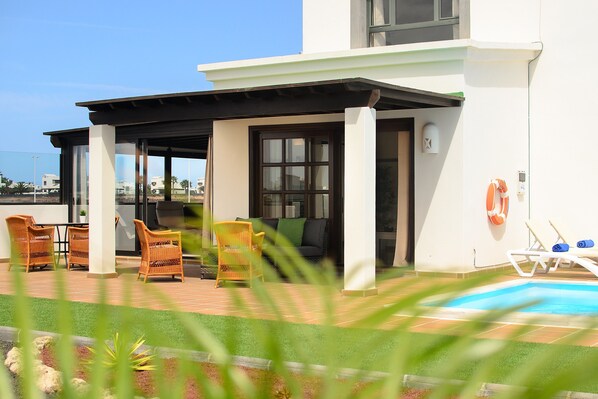 Dit elegante, luxe vakantiehuis ligt in een rustige wijk van Montaña Roja aan de rand van Playa Blanca en heeft een prachtig zwembad en een uitgestrekte tuin. De villa met marmeren vloeren en de klassieke, witte buitenkant van Lanzarote strekt zich uit over 2 verdiepingen en bestaat uit een woonkamer, een eetkamer met grote ramen en toegang tot het terras, een goed uitgeruste keuken, 3 slaapkamers (1 met 2 eenpersoonsbedden, 1 met een tweepersoonsbed en 1 met een kingsize bed) en 2 badkamers en is daarom geschikt voor 6 personen. Extra voorzieningen zijn Wi-Fi, televisie en een wasmachine. De buitenruimte van de villa is een ware vakantieoase en biedt een prachtig aangelegde tuin en een groot zwembad, verwarmd zonder extra kosten, dat zorgt voor verfrissing en plezier. Het royale terras - met zowel overdekte als niet overdekte delen - nodigt je uit om te zonnebaden in de ligstoelen bij het zwembad of om verse maaltijden te bereiden op de barbecue en deze te delen aan tafel. Boven, op het grote balkon, kun je je avonden afsluiten met een glas wijn en de prachtige zonsondergangen van Lanzarote bewonderen terwijl je naar de oceaan of de vulkaan van Montaña Roja kijkt. Het plaatselijke strand van Montaña Roja ligt op 750 m of 9 minuten lopen. Een ruime keuze aan winkels, restaurants, bars en cafés vind je in het centrum van Playa Blanca, dat op ongeveer 5 km of 8 minuten rijden ligt. Hier vind je ook prachtige zandstranden zoals Playa Flamingo en Playa de Playa Blanca, waar je kunt uitrusten op het fijne, gouden zand en kunt luisteren naar de rustgevende oceaangolven.
