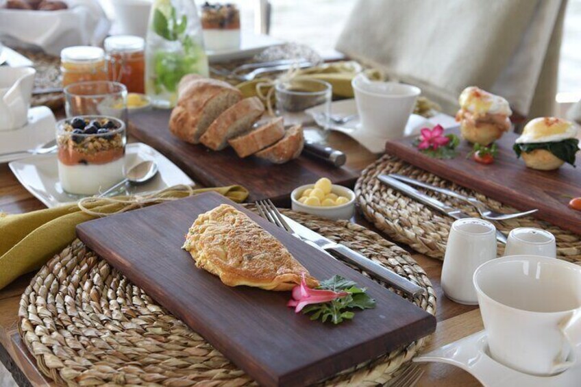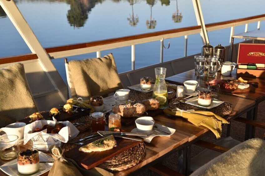Engels ontbijt: Een optie van een Engels ontbijt dat vers aan boord wordt bereid.