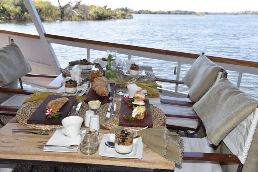 Cruise bij zonsopgang op de Zambezi-rivier