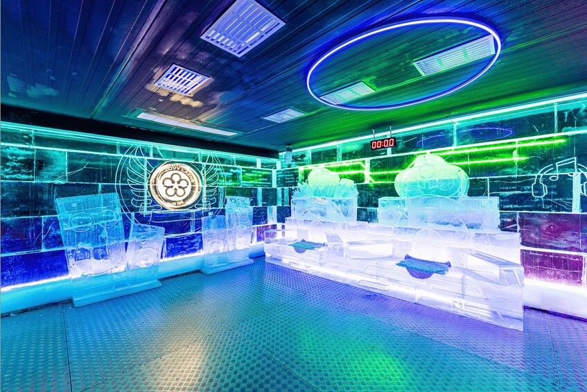 Welkom bij Icepub Praag, waar alles wat je ziet of aanraakt een ijskoud wonder is - van de muren, bar en tafels tot de prachtige beeldhouwwerken die minutieus zijn uitgesneden. Omarm een atmosfeer waar de temperatuur het hele jaar door een kille -7 graden Celsius blijft!