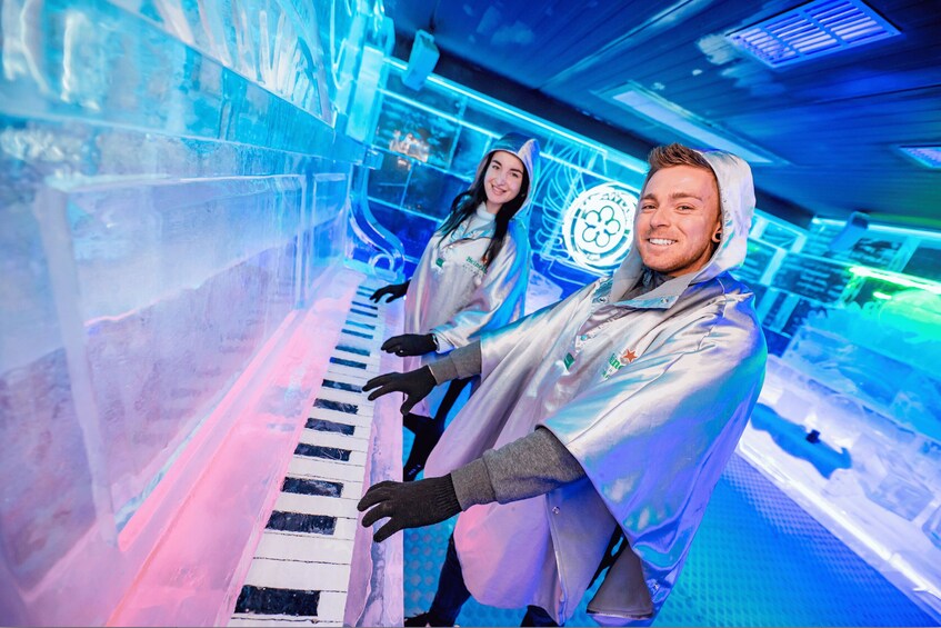 Bij aankomst krijg je een knusse thermische jas en handschoenen aan, zodat je comfortabel dit ijzige wonderland kunt verkennen. Je bezoek belooft een boeiende reis van 20 minuten, waarbij je de gelegenheid hebt om te genieten van de ambiance terwijl je geniet van een gratis drankje dat bij de toegangsprijs is inbegrepen.