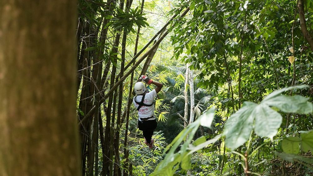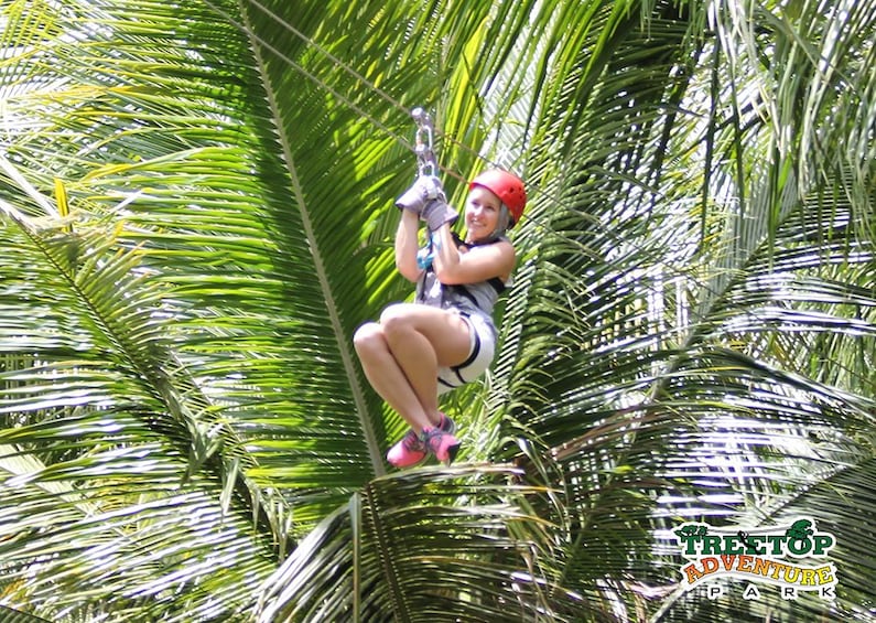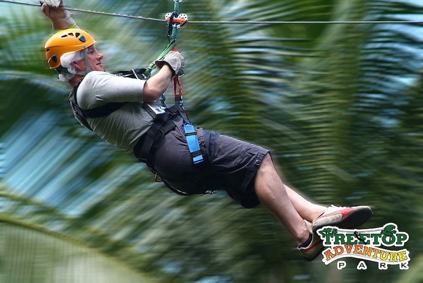 De overkapping bestaat uit 11 tokkelbanen - waaronder de langste en hoogste van het eiland - en twee netbruggen. De lijnen reiken tot 800 voet tussen de platforms en bereiken hoogten tot 150 voet boven de bosbodem. Tussen de tokkelbanen door is er genoeg tijd om de unieke panoramische uitzichten in je op te nemen en de prachtige flora en fauna van het bos te observeren.