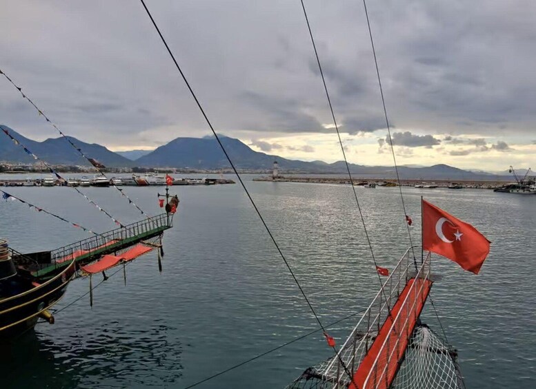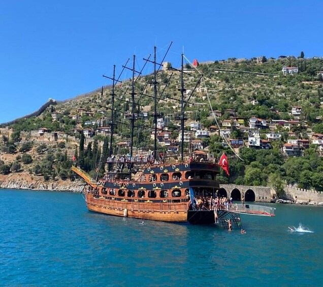 • Maak een boottocht op de Middellandse Zee vanuit Alanya op een boot in de stijl van een piratenschip