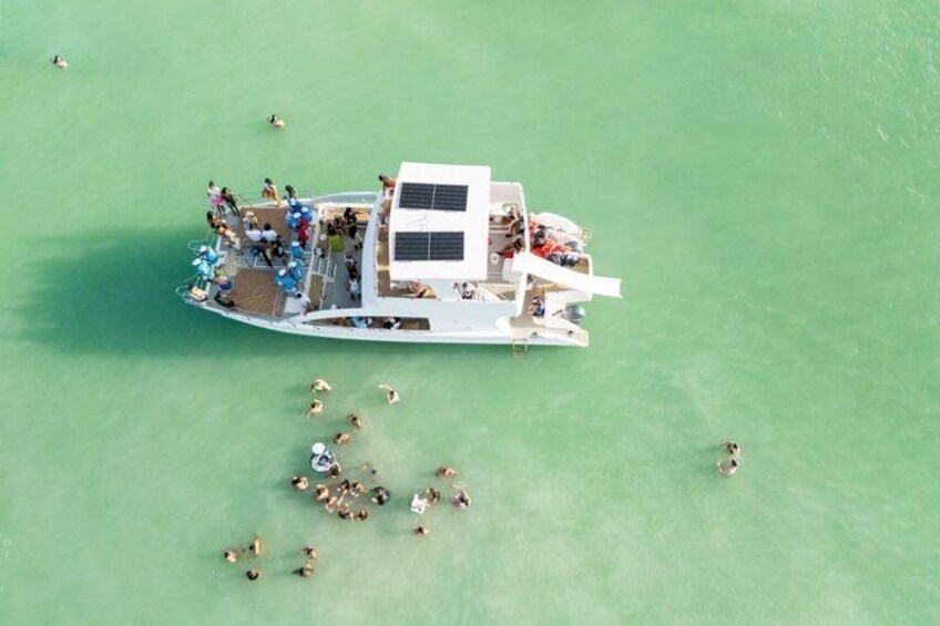 Catamaran Party Boat-excursie van een halve dag met snorkelen en natuurlijk zwembad
