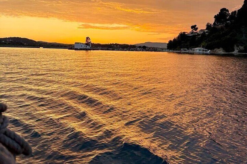 Corfu: cruise bij zonsondergang op een houten schip met cocktails en hapjes