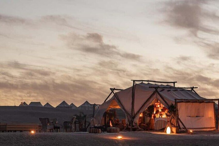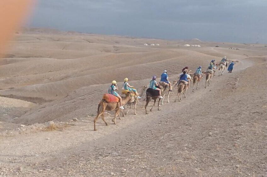 Kamelenrit en diner bij zonsondergang in Agafay Desert