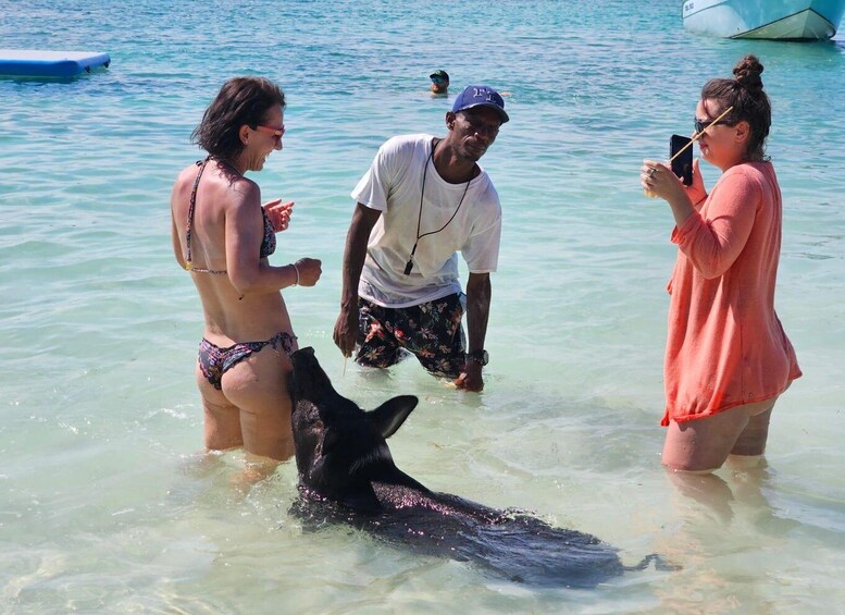 Vaar naar het levendige koraalrif van Pearl Island, waar je tussen de kleurrijke vissen kunt snorkelen en onvergetelijke herinneringen kunt creëren. Glijd mee met sierlijke schildpadden op Turtle Cay en bewonder hun schoonheid. En dan het hoogtepunt - speelse interactie met de plaatselijke zwemmende varkens op Rose Island.