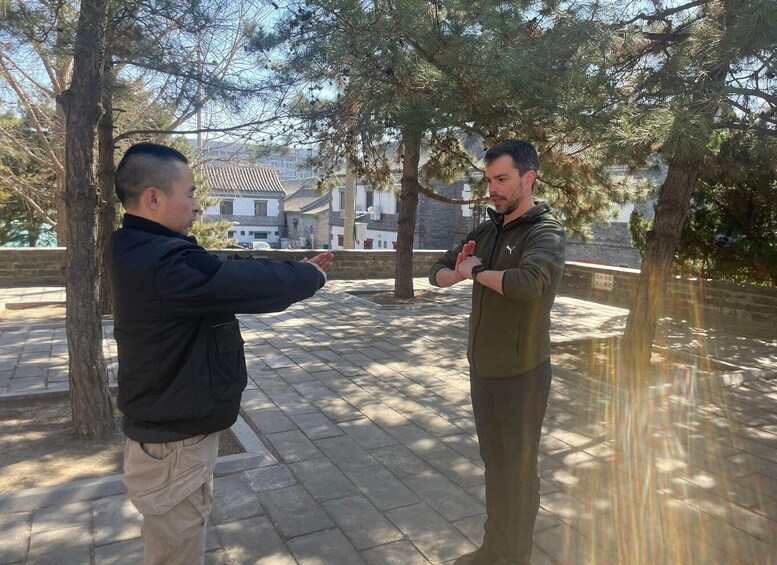 Geef traditionele Chinese Kungfu-les. De les wordt gehouden in de plaatselijke wijk hutong, in de Pudusi erfenis die al bijna 700 jaar een koninklijke tempel is en direct naast de oostelijke poort van de Verboden Stad ligt. In deze één uur durende les introduceren we de basistraining van Chinese Kungfu en het praktische gebruik van Kungfu-technieken in het dagelijks leven. Onze leraar is sinds 5 jaar goed opgeleid in Shaolin, beheerst Shaolin kungfu en veel verschillende stijlen van traditionele vormen. Het belangrijkste is dat hij deze technieken niet alleen uitvoert, maar ook in de praktijk brengt en je leert om ze in je leven te gebruiken voor zelfverdediging. Je krijgt een introductie en demonstratie van de echte geest van traditionele Chinese Kungfu.
