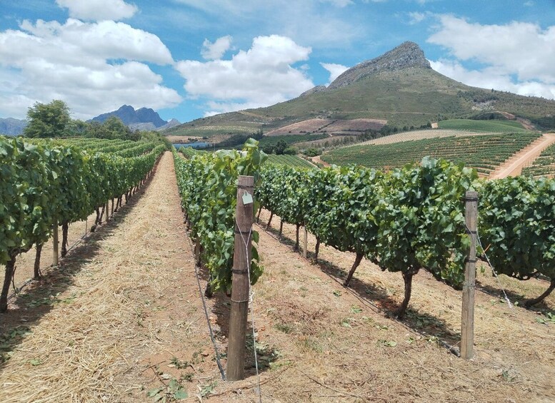 Rijd naar het kleine maar levendige stadje Stellenbosch, dat bekend staat als de op één na oudste koloniale stad van Zuid-Afrika, na Kaapstad. Deze streek staat bekend om de teelt van een grote variëteit aan druiven, waaronder chenin blanc, shiraz pinotage en méthode cap classique voor mousserende wijn. De Kaaps-Hollandse architectuur, de watergroeven en de meer dan 300 jaar oude eikenbomen geven je een nostalgisch gevoel van een vervlogen tijdperk. Dorp street heeft bijvoorbeeld de langste rij oudste gebouwen op het zuidelijk halfrond. Je gids geeft je de kans om de stad te voet te verkennen en geeft je ook een oriëntatie van de stad.