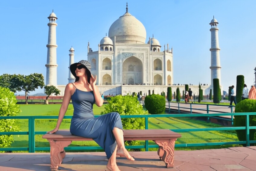Geniet van een naadloos Taj Mahal bezoek met privé-auto met airconditioning voor ophalen en wegbrengen vanaf elke locatie in Agra-hotels, treinstation of vliegveld. Een gediplomeerde gids en toegangskaartjes zijn inbegrepen.