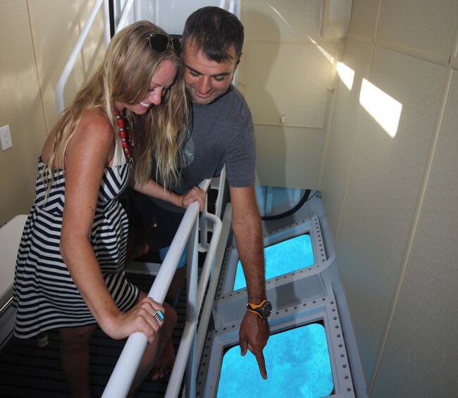 Zelfs als je nog nooit hebt gesnorkeld of geen sterke zwemmer bent, kun je nog steeds snorkelen! De bemanning zal je geduldig instrueren over het gebruik van de snorkeluitrusting. Als je niet wilt snorkelen of zwemmen, heeft de Calypso in één gedeelte een glazen bodem, zodat je naar je vrienden en de vissen kunt kijken. Als je besluit om je later bij hen aan te sluiten, is het bereiken van het water eenvoudig. Brede trappen worden neergelaten door het wateroppervlak. Als je liever express gaat, heeft de boot ook twee waterglijbanen en een springpunt op het tweede dek.