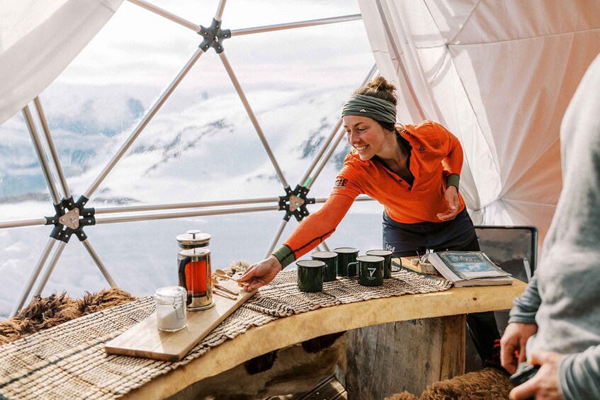 Na een lange dag in de natuur hoef je alleen nog maar te ontspannen en te genieten van de spectaculaire nachthemel. Wees je ervan bewust dat het weer tijdens de Noorse winter onvoorspelbaar is, het kan op elk moment omslaan.